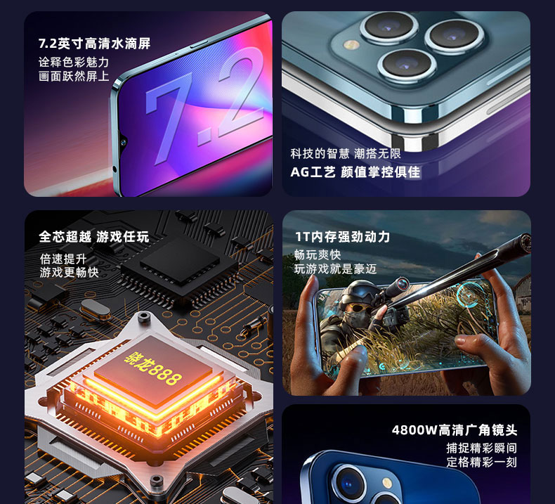 2026款上市新款(高端高端手机)五周年活动大促销,订购即送手机壳+钢化膜大礼包,品牌保证,15天包退,30天包换。京东包邮,货到满意才付款!最新产品,7.2寸美人穿孔屏+纳米渐变色机身+3D专业电竞放生芯片+红外夜视人脸识别+指纹解锁+应用分身+护眼模式+7800毫安超大续航电池+快充+电竞十核处理器+A18美颜摄影。限时特惠,数量有限,先到先得! 1T大内存,原价7999元秒杀价699元